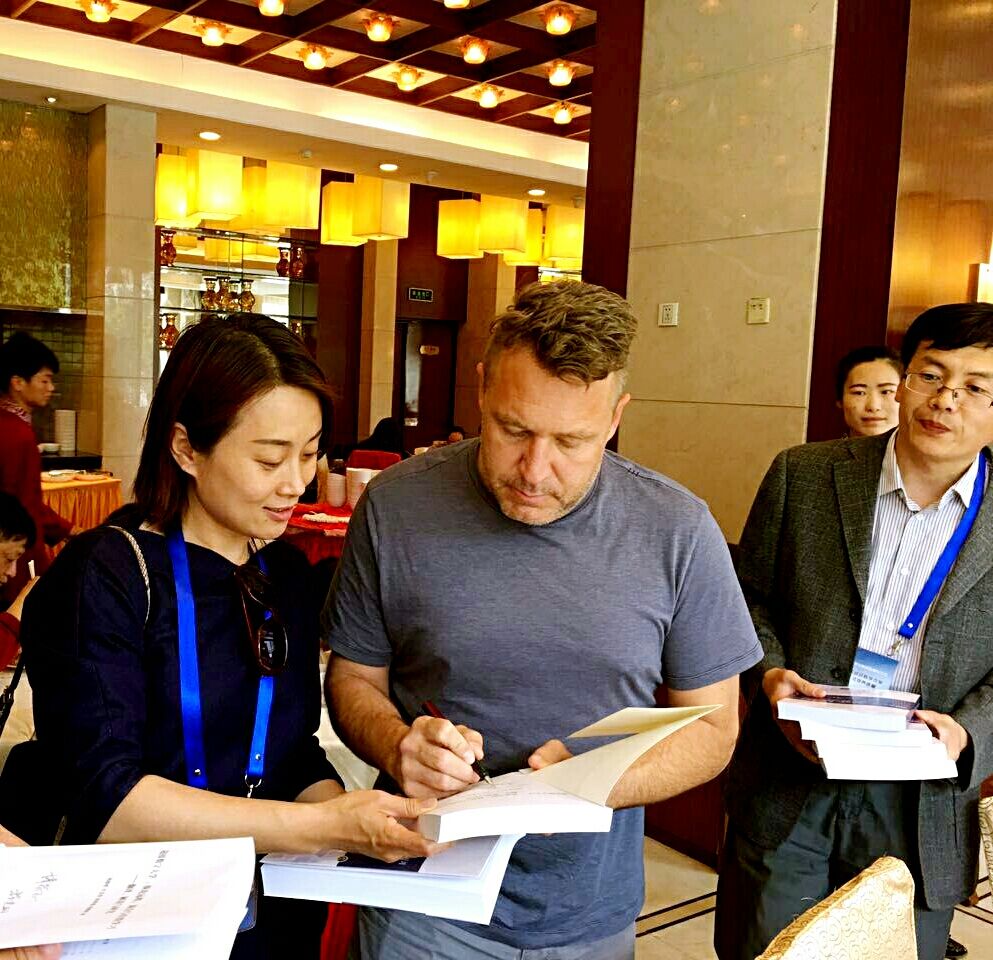 我院尹苗老师和慕课之父美国德克萨斯州大学Siemens教授在一起