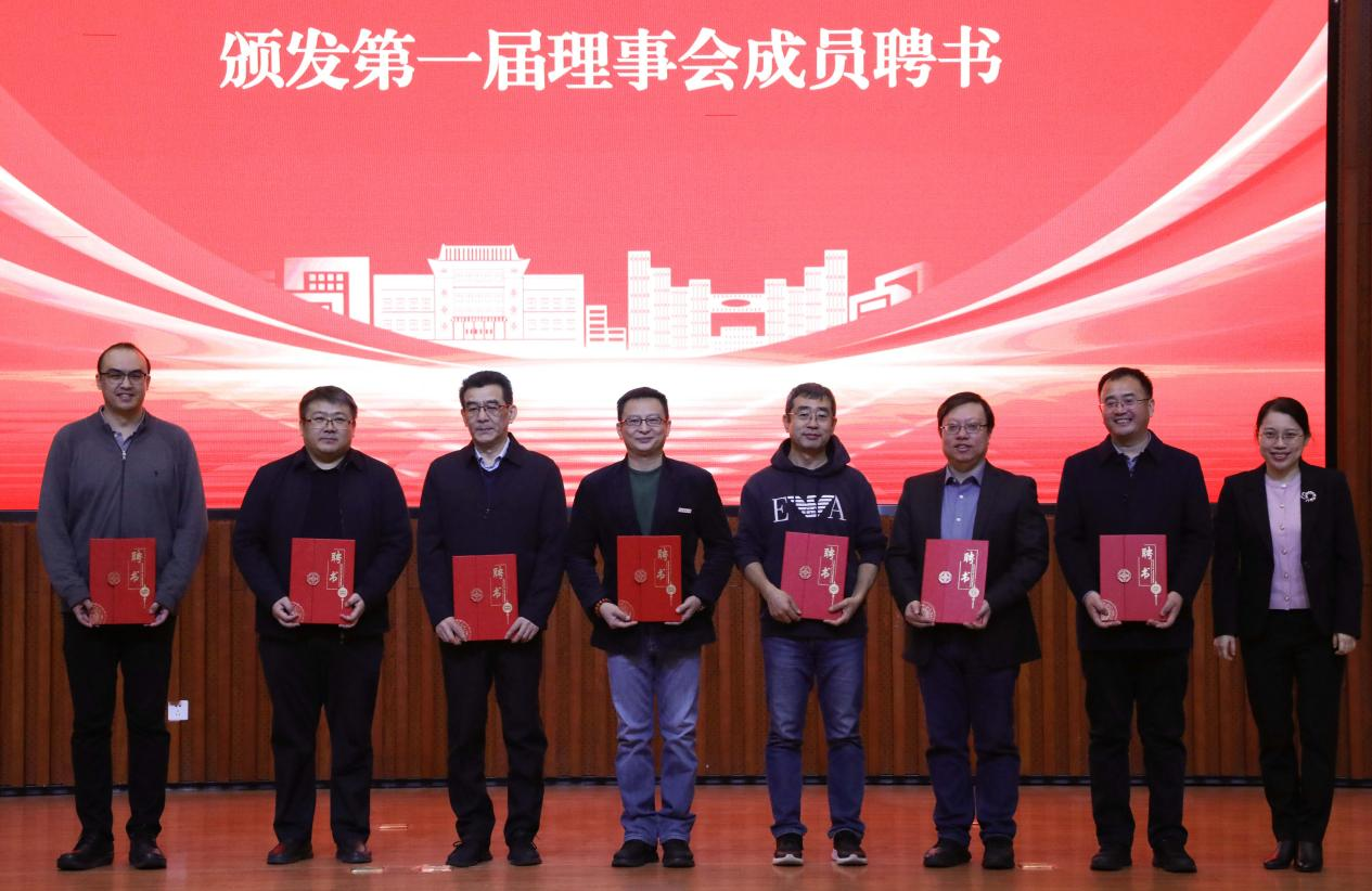 英国上市公司365校友总会秘书长、校合作发展处处长赵湘轶宣读校友总会关于成立英国上市365校友分会的函。大会审议并通过了英国上市365校友分会章程和理事会名单。赵彦修老校长和1982级校友、山东外国语职业技术大学党委书记郭善利共同为“英国上市365校友分会”揭牌。李娜副校长为理事会成员代表颁发聘书。马长乐院长为“博物华章”校友基金捐资校友代表颁发教育基金会捐赠证书。