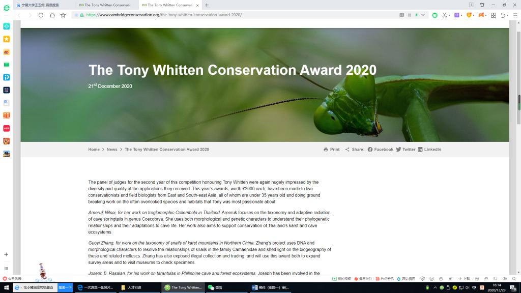 (相关链接https://www.cambridgeconservation.org/the-tony-whitten-conservation-award-2020/)
