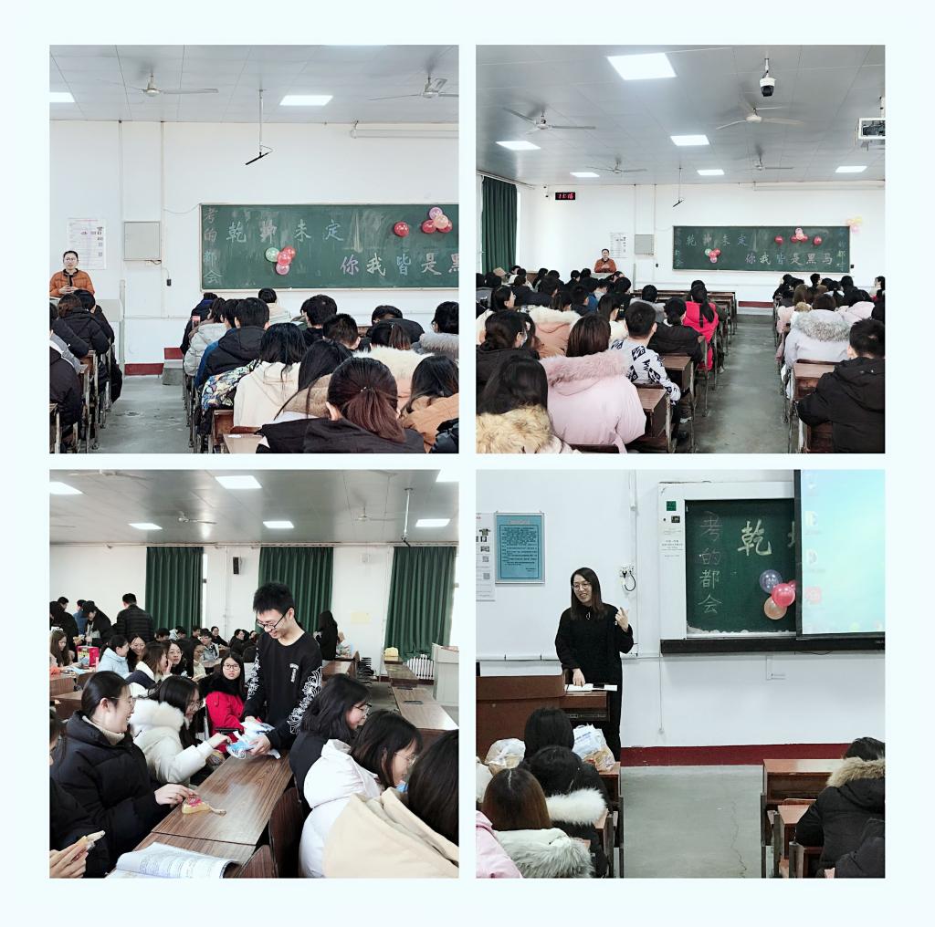 为给奋斗在考研路上的学生送上一份温暖,舒缓他们的心理压力,我院于12月25日在教学一楼召开了考研动员大会。学院党委副书记谭效忠,团委书记师静、2017级辅导员史飞以及大四全体学生500余人参加了此次大会。
