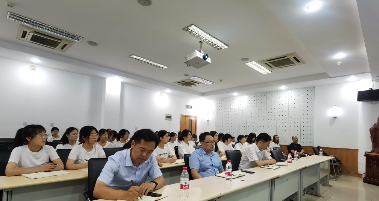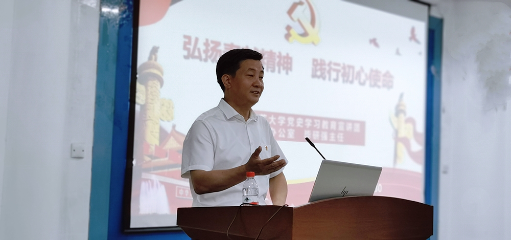 6月30日下午,按照学校党史学习教育部署安排,党委办公室主任兼保密工作室主任毕研强结合自身学习和感悟以“弘扬奉献精神 践行初心使命”为题来我院讲授专题党课。专题党课在科研楼101报告厅举行,学校党委办公室全体同志,学院领导、全体辅导员和2018级全体教育实习学生党员共同聆听党课。