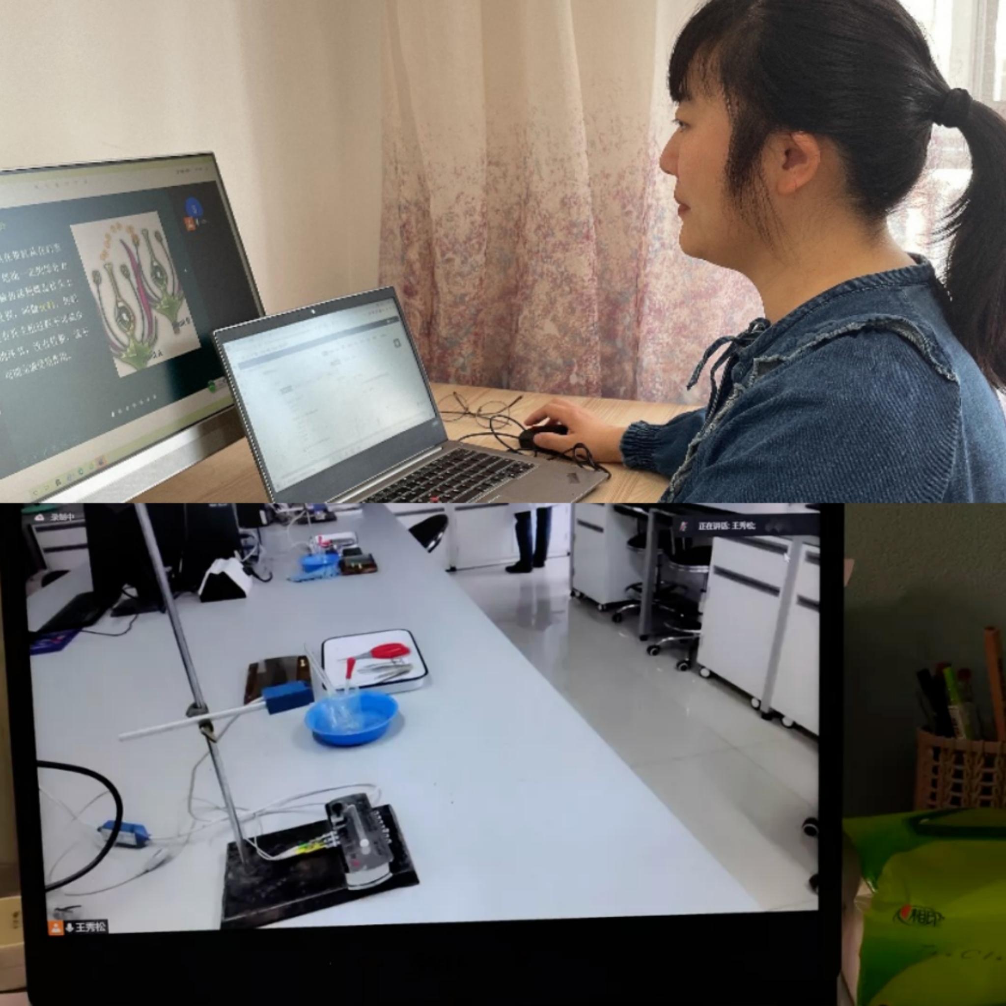 “老师,海棠花瓣怎么还有6个的,是怎么回事呢?”学生们在群里问道,“是会有这种情况,出现了一些变异,但大多数是5瓣的。”老师耐心回答道。在任课老师张洛艳《植物学实验》的课堂中,师生线上互动正在进行。张洛艳介绍,根据植物学实验的课程特点,结合春季和长清湖校区丰富的植物资源,她重新设计了实验,并提前拍摄好实验教学视频,让学生选择在校园内就能采集到的花,自主进行实验。在实验时,张洛艳同时线上指导,QQ群内随时答疑,帮助学生把握实验细节,取得了良好的教学效果。《人体解剖生理学实验》则由课代表在校内实验室准备材料和维护牛蛙,并通过电脑与任课老师王秀松联络,随时展现各个组的情况,任课老师全程线上指导。学生们在下午13点到18点分批进入实验室进行实验,目前已经有上百人完成了实验课程。生科院本科课程除理论课全部实现线上教学外,目前学院已有三门实验课通过视频教学或仿真软件有效开展,其他实验也在积极筹备中,通过技术支持,云端互动,坚守线上教学的“阵地战”。