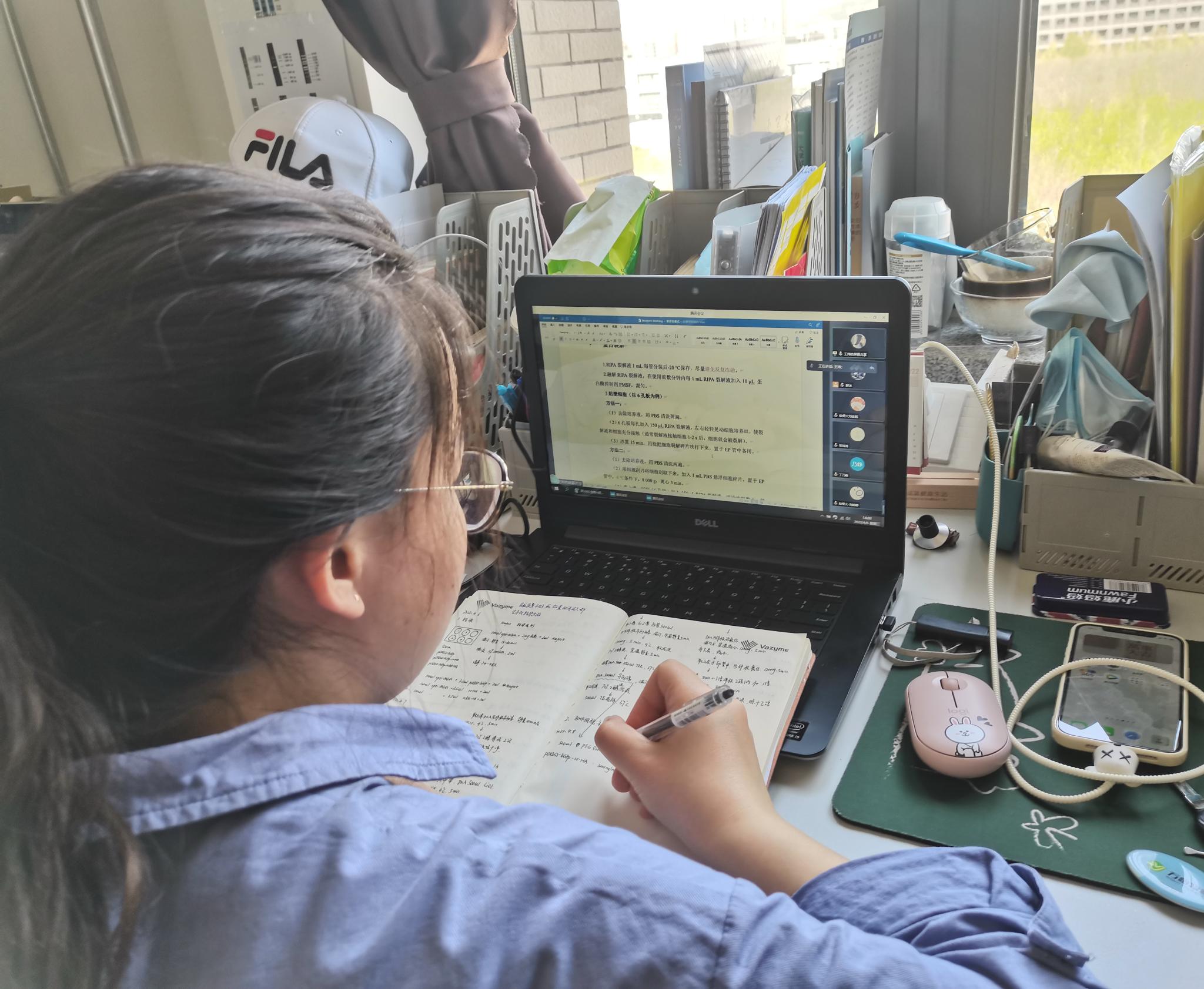 “刚开始听到封校的消息内心还是挺慌乱的,没有实验试剂及耗材,实验可怎么办!”细胞生物学研二学生李宁馨回忆道。学院第一时间向学校提出申请,安排部署每周一、三、五在两校区间进行实验试剂和耗材的协调配送工作。学生提前一天填写接送试剂的表格,由辅导员带领学生统一集合,有序地领取经过消杀的实验物品,领完及时签字备注,在符合疫情防控的要求下,确保了科研实验的顺利进行。“我去领过好几次了,拿到沉甸甸的实验试剂时,感觉很安心。”李宁馨说,线上组会每周进行,导师每天线上了解实验进度,指导在校研究生进行实验。