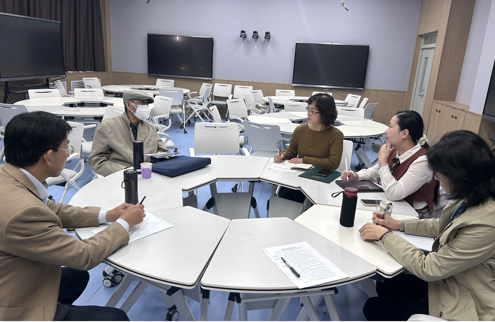 课堂展示结束后,老师们到智慧教室220开展教学研讨。督导组专家认为张芳凝老师教学设计思路清晰,教学进程组织合理,能够充分调动学生的积极性,并在教学技巧、PPT制作、讲课语速等方面提出进一步改进意见。张老师表示,通过此次活动自己收获很多,督导专家提出的建议中肯、合理,对自己的教学能力和教学素养提升帮助很大。