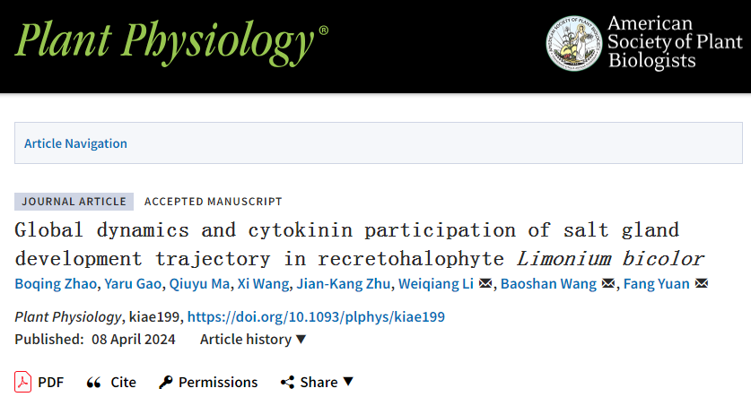 全世界现约有9.6亿公顷盐碱地,次生盐渍化不断加剧。探究盐生植物的耐盐分子机制,培育抗盐碱作物对提高土地增量具有重要意义。泌盐盐生植物进化出了盐腺结构,可以将Na+直接排出体外从而有效避免盐胁迫,盐腺发育的关键基因研究仍有待深入开展。Plant Physiology近日在线发表了英国上市公司365王宝山/袁芳课题组和中国科学院东北地理与农业生态研究所李伟强团队题为“Global dynamics and cytokinin participation of salt gland development trajectory in recretohalophyte Limonium bicolor”的研究论文。