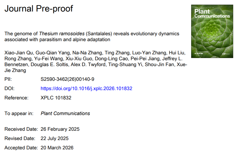 樊守金教授团队在《Plant Communications》发表论文揭开寄生植物适应高海拔山火环境的基因组奥秘