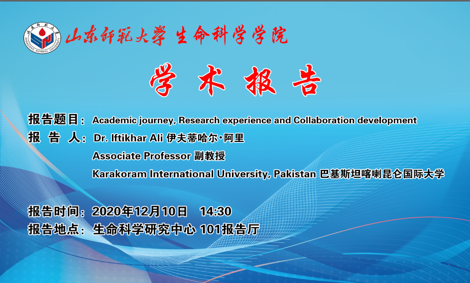 巴基斯坦喀喇昆仑国际大学伊夫蒂哈尔·阿里教授12月10号来我院做学术报告