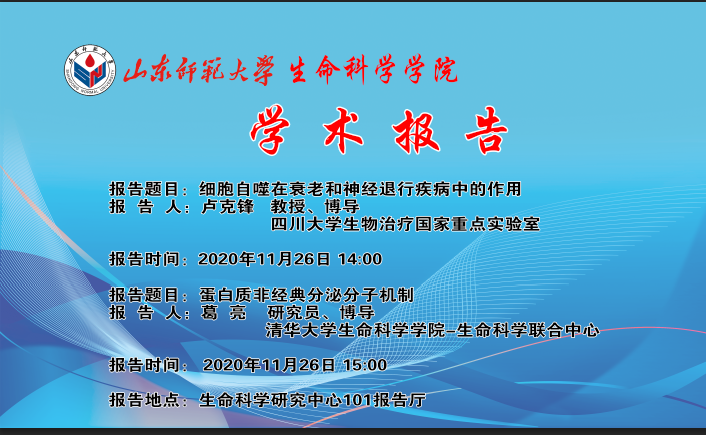 四川大学卢克锋教授和清华大学葛亮研究员11月26号来我院做学术报告