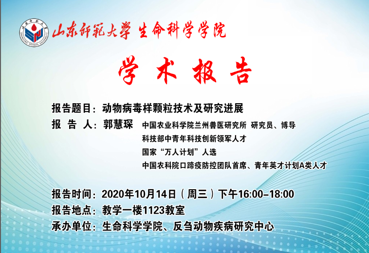 中国农业科学院兰州兽医研究所郭慧琛研究员10月14日来我院做学术报告