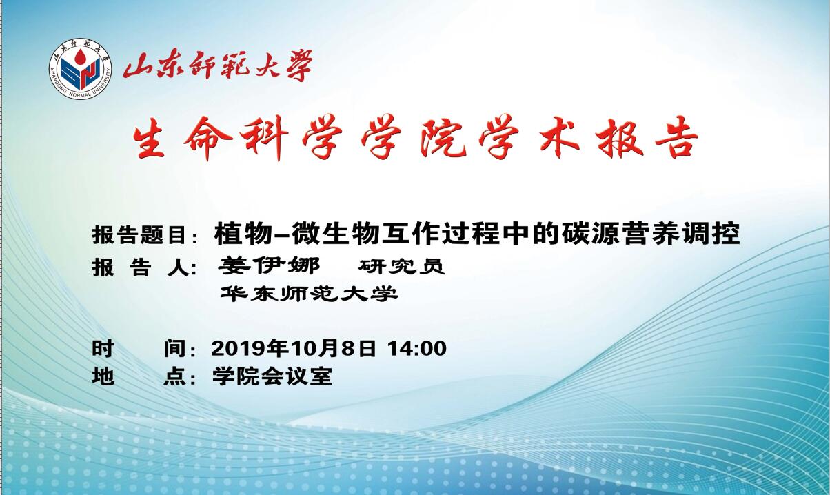 华东师范大学姜伊娜研究员10月8号来我院做学术报告