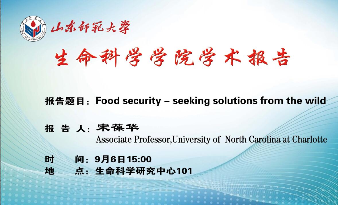 美国北卡罗来纳大学宋葆华副教授9月6号来我院做学术报告