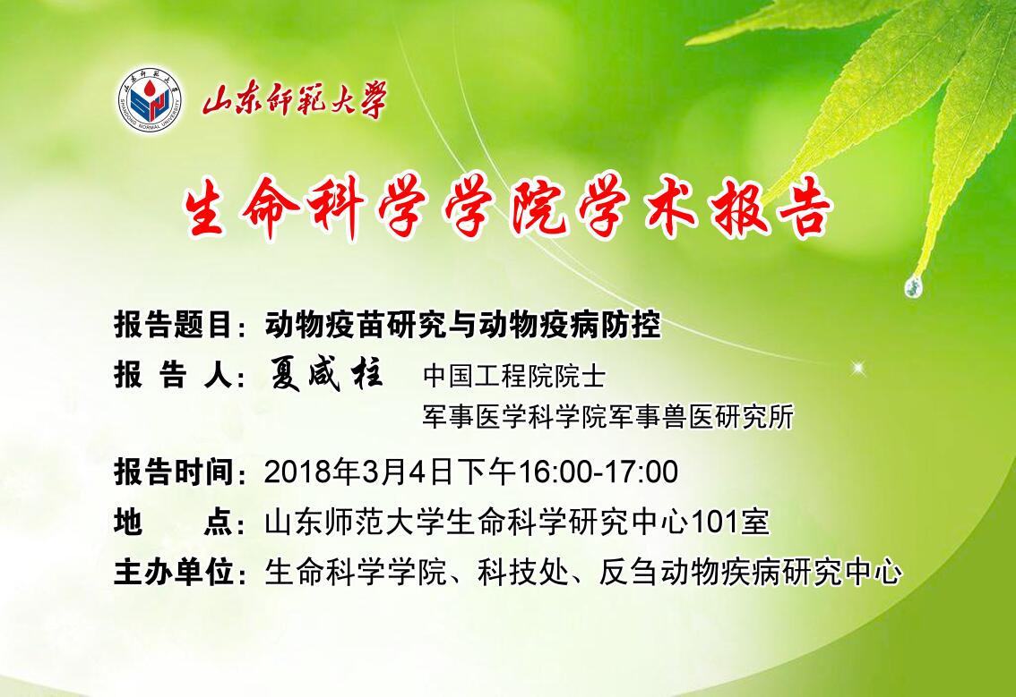军事医学科学院夏咸柱院士2018年3月4日来我校做学术报告