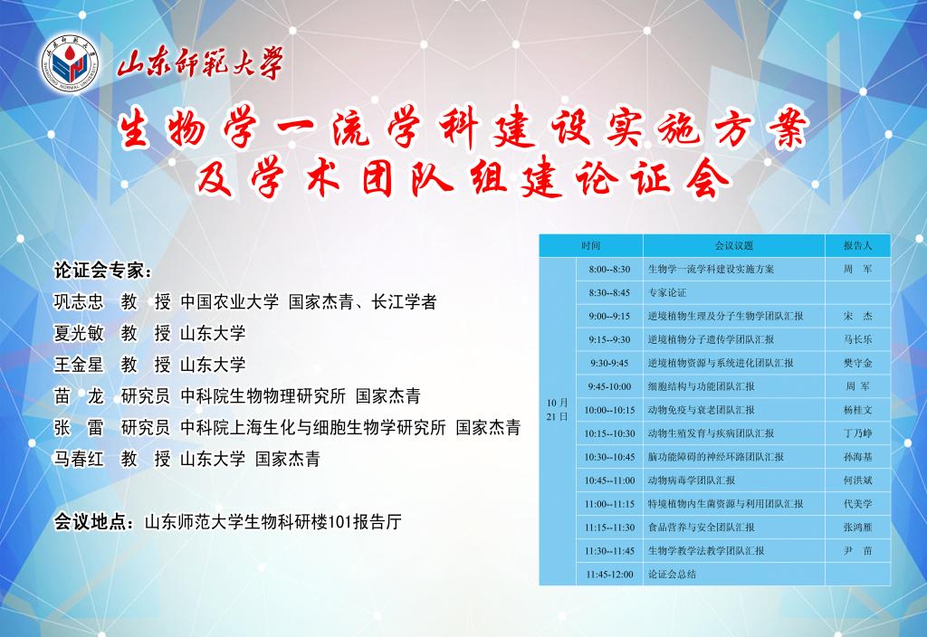 我院将于2017年10月21日举行生物学一流学科建设实施方案及学术团队组建论证会