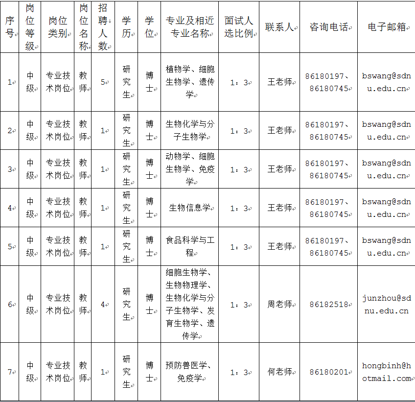 二、生命学院未来5年引进人才条件及学科