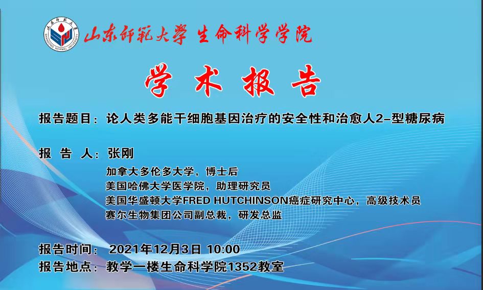 塞尔生物集团公司总裁张刚12月3号来我院做学术报告