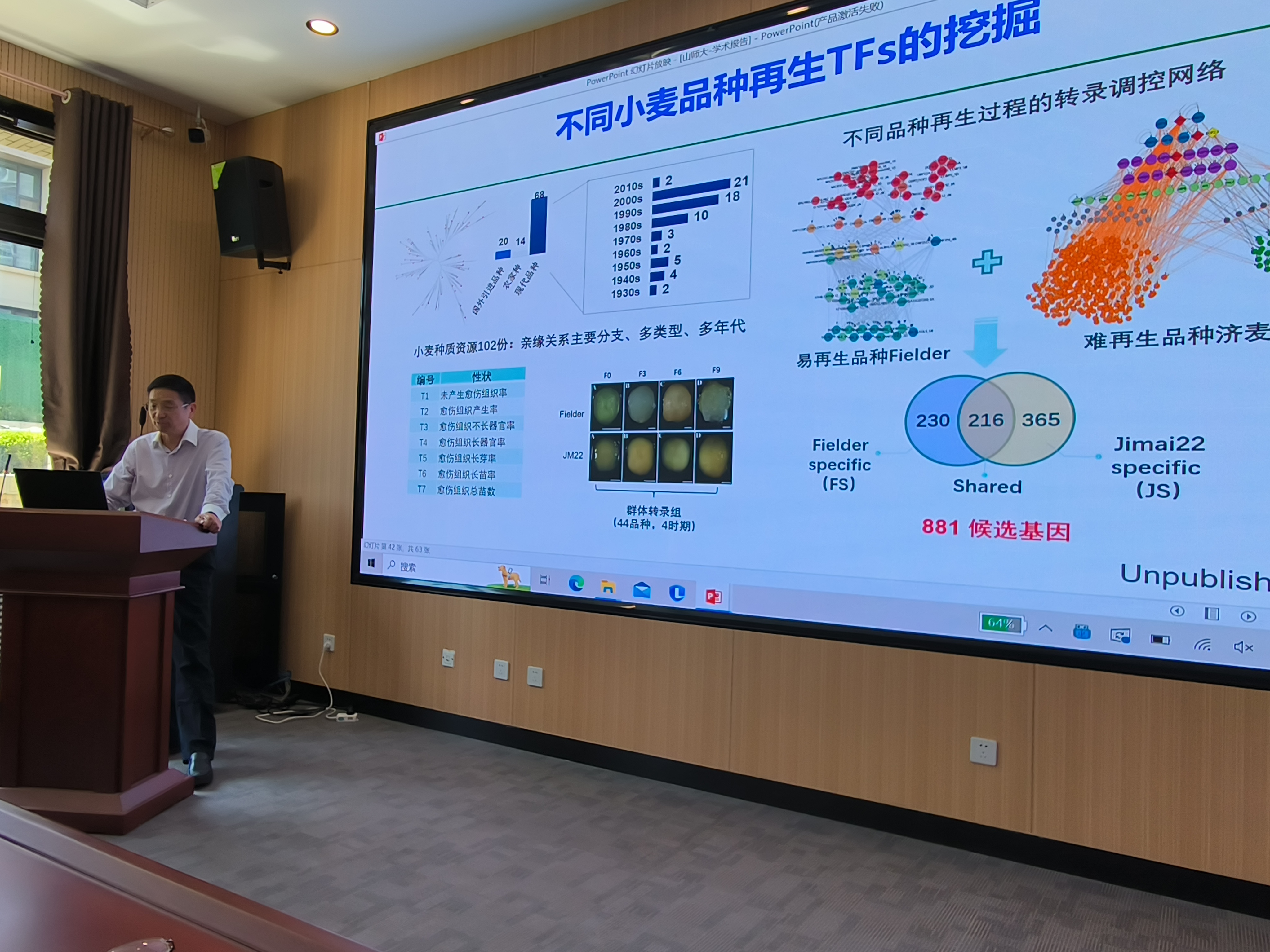 张宪省教授本次报告内容分成三部分,第一部分重点介绍植物干细胞的特征、类型以及形成和维持的机理;第二部分重点介绍植物再生过程中,多能干细胞和全能性干细胞形成及植株再生的机制;第三部分介绍将植物干细胞技术应用于提高植物遗传转化效率和无性快繁。在报告后,张宪省教授与在座的老师和同学针对学术问题做了很多深入的探讨和交流,加深了大家对相关知识的理解。最后他鼓励和邀请广大老师同学能够去山东农业大学进行学术学习和交流。