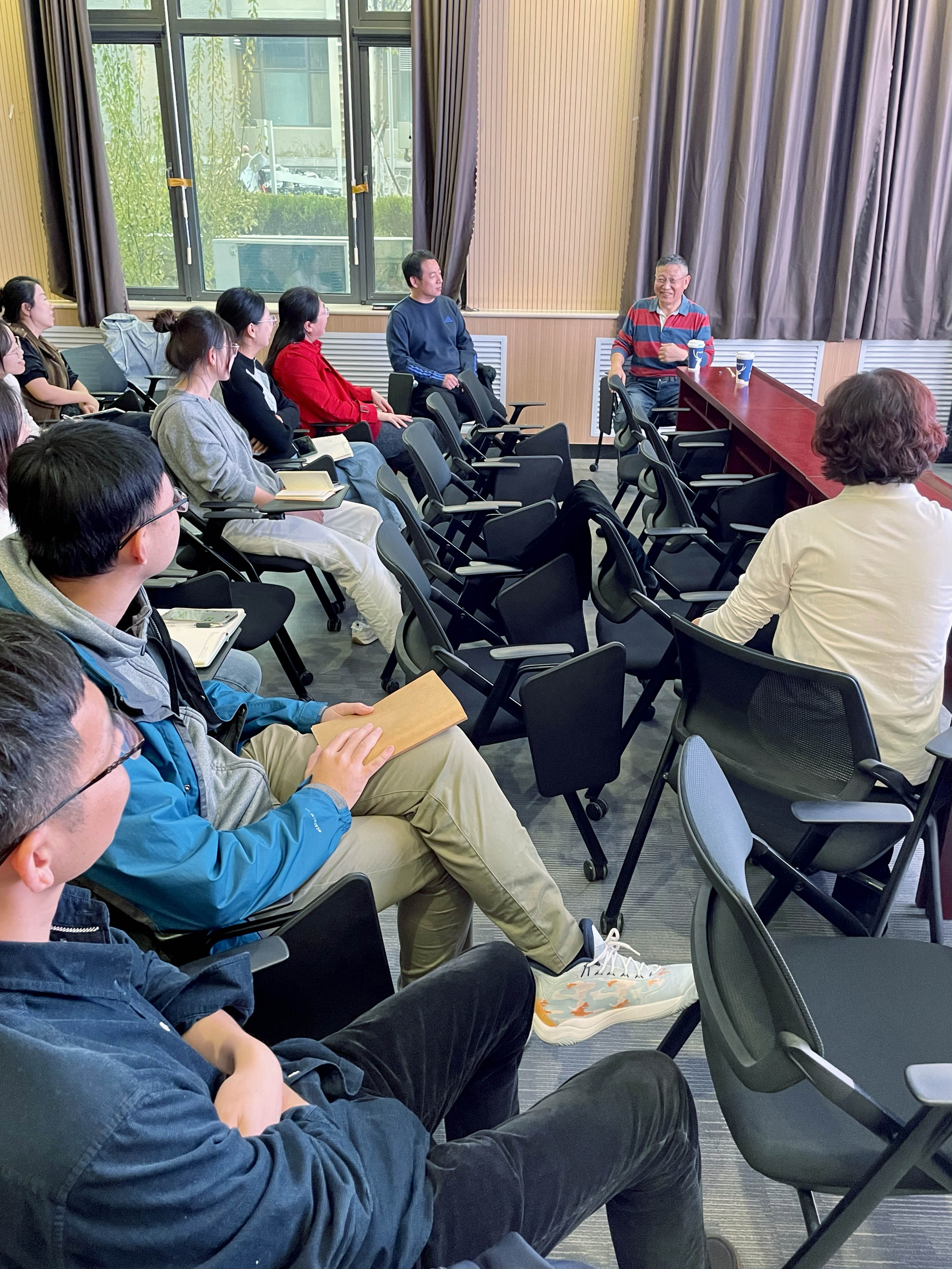 图:朱学良教授与我院教师探讨基金申请经验