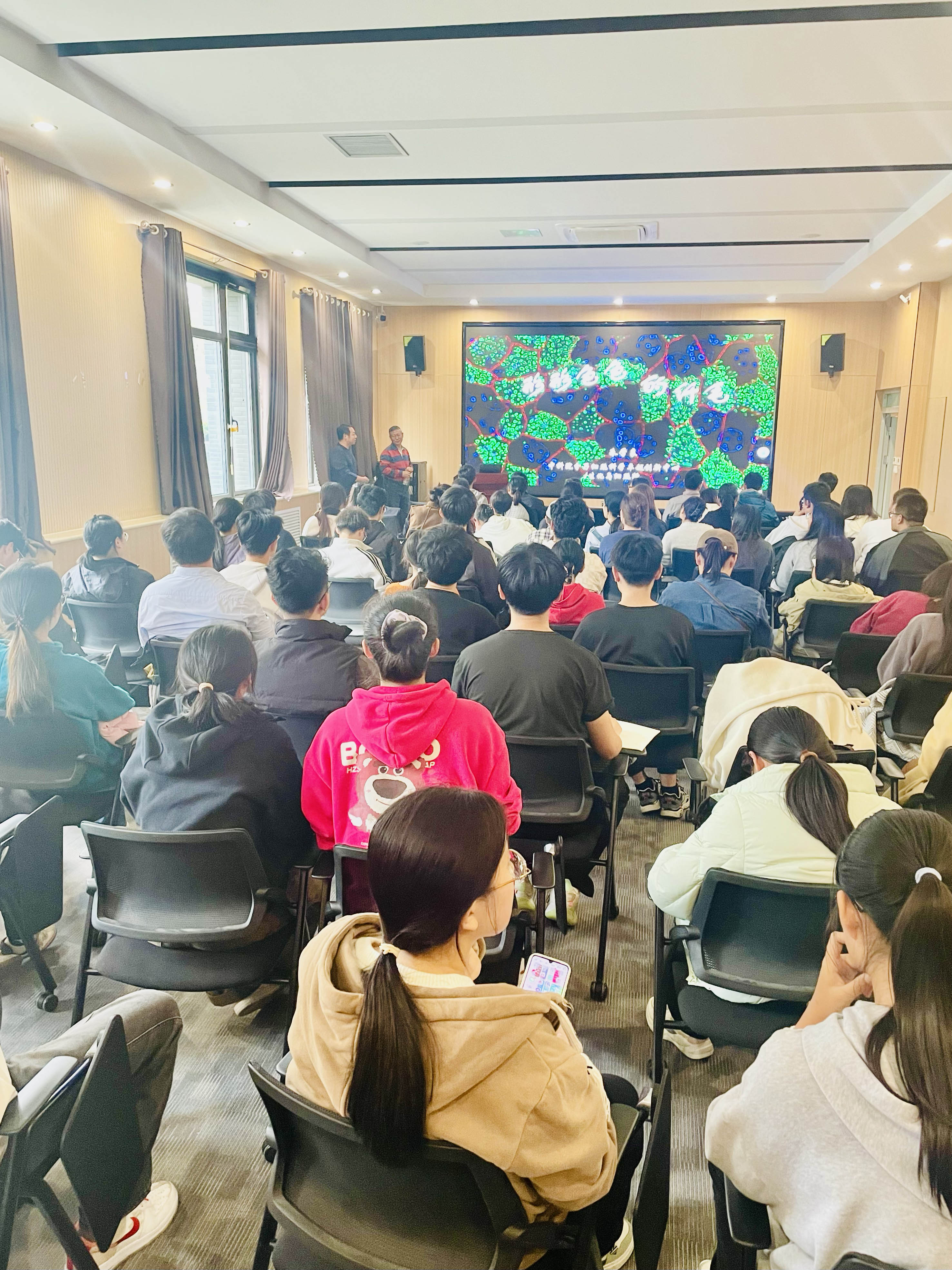 纤毛(cilium)是基于微管的毛状细胞器,行使运动和感觉功能。动物利用动纤毛来移动个体、驱动精子运动和原肾管尿液、气管痰液、中枢神经系统脑脊液等管腔液流动;利用多种静纤毛,作为“天线”感受光、力等物理信号、气味分子等化学信号,以及激素、形成素等生物信号,以实现视觉、听觉并调控胚胎发育和维持个体自稳态。哺乳动物丧失纤毛功能会导致胚胎发育失败,而纤毛功能的异常则引起累及全身几乎所有脏器的多种遗传性综合征。纤毛的结构复杂而精美。报告中,朱教授展示了形形色色的纤毛世界,介绍纤毛的生理、病理功能。朱学良教授生动的语言和旺盛的激情感染了参加报告的各位师生。
