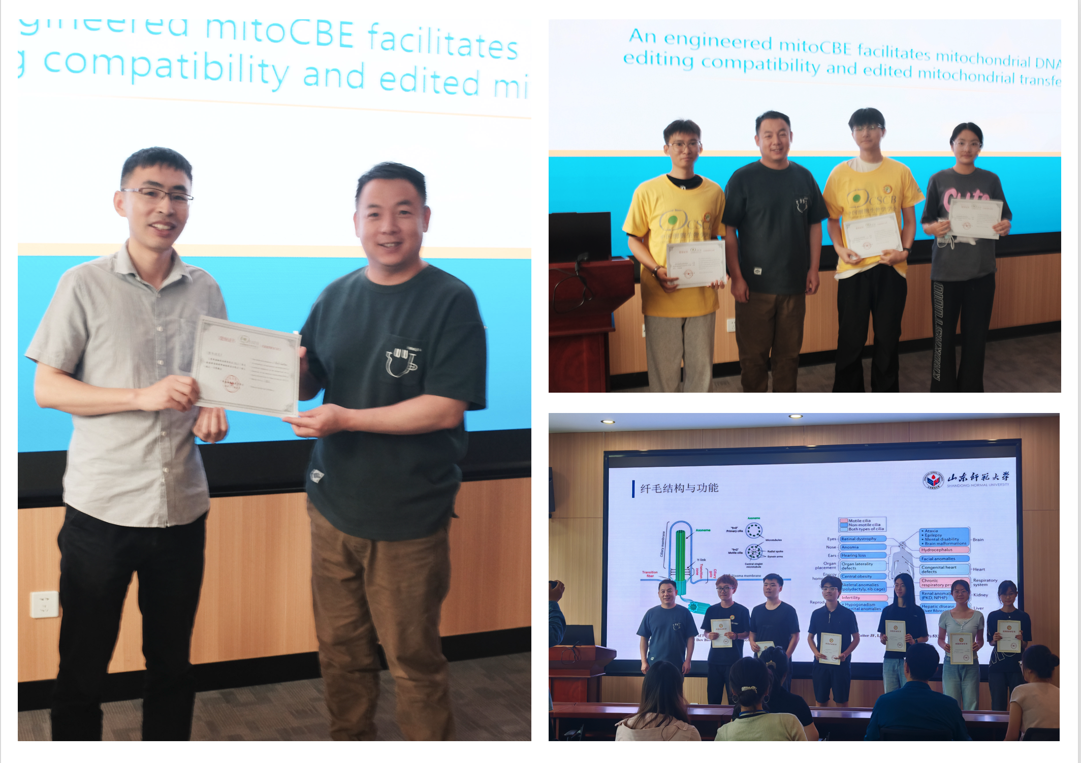 纤毛(cilium)是基于微管的毛状细胞器,行使运动和感觉功能。动物利用动纤毛来移动个体、驱动精子运动和原肾管尿液、气管痰液、中枢神经系统脑脊液等管腔液流动;利用多种静纤毛,作为“天线”感受光、力等物理信号、气味分子等化学信号,以及激素、形成素等生物信号,以实现视觉、听觉并调控胚胎发育和维持个体自稳态。哺乳动物丧失纤毛功能会导致胚胎发育失败,而纤毛功能的异常则引起累及全身几乎所有脏器的多种遗传性综合征。同学们通过学术报告、实验室参观以及了解和接触模式实验生物,对纤毛这一重要而有趣的细胞器有了很好的了解。