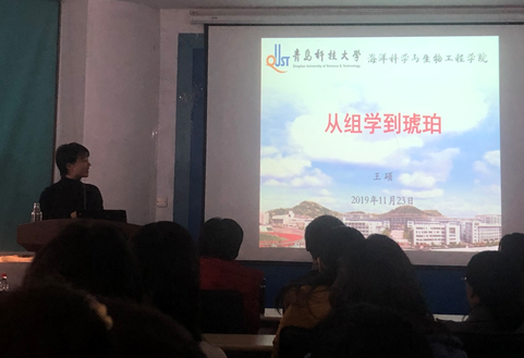 本次报告中王教授运用短视频、动态图片介绍报告内容,十分形象具体,不仅让同学们了解了从组学到琥珀这一研究领域以及利用琥珀我们能了解什么,还让同学们明白了科学研究需要巧用技术、勇于探索、推陈出新。(摄影:张家榕)