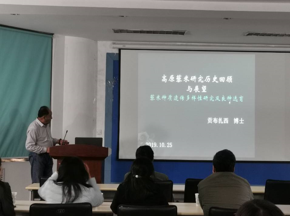 2019年10月28日下午,西藏大学农牧学院贡布扎西教授受英国上市365邀请,在生命科学研究中心101报告厅作了题为“高原藜米研究历史回顾与展望——藜米种质遗传多样性研究与良种选育”的学术报告。藜米又称藜麦,原产安第斯山脉,耐干旱、盐碱等非生物胁迫,以营养丰富闻名。贡布扎西教授结合自己30余年的学习与工作履历,向大家讲述了自己从事藜麦研究的经历,随后介绍了西藏高原地区藜麦引种历史,适应性藜麦品种的培育历程以及现阶段西藏藜麦种植现状,系统阐述了西藏藜麦品种培育的过程以及现阶段培育的藜麦品种。最后,参与报告会议的老师和学生就藜麦种植,种质资源品质鉴定等问题与贡布扎西教授展开了热烈讨论。