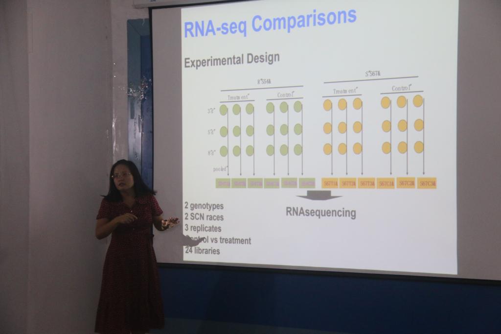 在报告中,宋教授围绕如何提供更多的食物以保证粮食安全问题,提出利用野生植物来提高作物抗逆性和利用未利用土地的策略。课题组基于野大豆(Wild soybean)和野生番薯(Wild sweet potato)、沙豆(Sand bean)等三个作物近缘种,利用Omics、QTL和GWAS等组学数据整合的方法,克隆并验证了一个抗虫相关基因的功能,探讨了抗虫的分子进化机制和生态适应性。在报告会最后,宋老师与老师和同学们进行了深入的讨论交流。