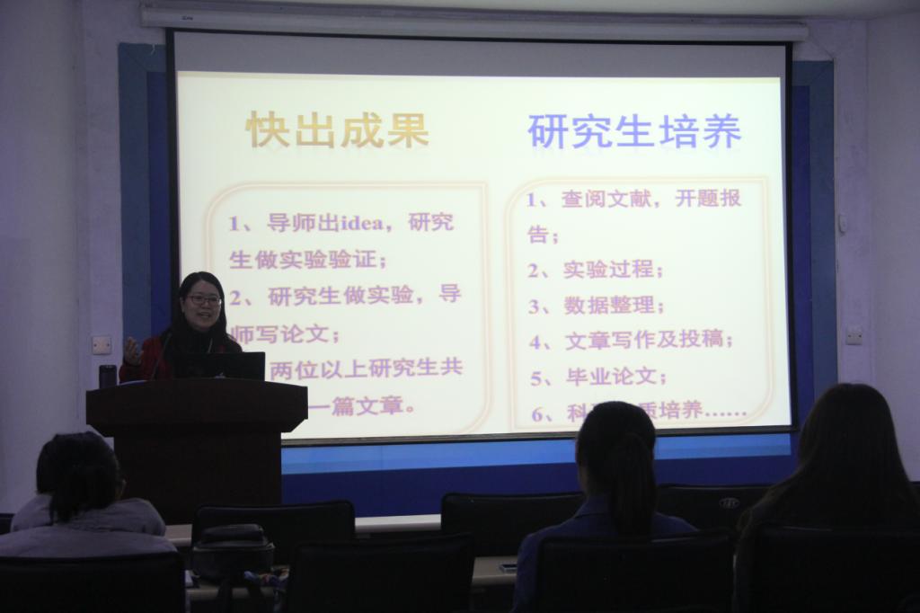 张教授首先分享了她的科研经历,并结合自己的经历向我们介绍了她在科研道路上的苦与乐,科研是一个辛苦的过程,但收获总与之并存,科研生活充满了挑战。然后她引用习近平总书记“撸起袖子加油干”的名言,鼓励我们鼓足干劲,不断向人生巅峰攀登。同时,张教授向我们介绍了目前科研工作者的现状,目前的科研现状下,科研工作快出成果与研究生的培养是存在矛盾的,如研究生做实验,导师写论文有利于快速出结果但却不利于研究生发展。但这两者应该是不矛盾的,处理好这两者的关系对于科研的发展大有裨益。张教授分享了一点自己在处理带研究生和科研成果的心得,并对于如何改进这些问题谈了自己的感想,并希望导师们正确处理现存的矛盾,对于学生未来的良好发展添翼。同时希望研究生们努力学习,投身科研,寻找科研工作的乐趣,正确处理生活和科研的关系。