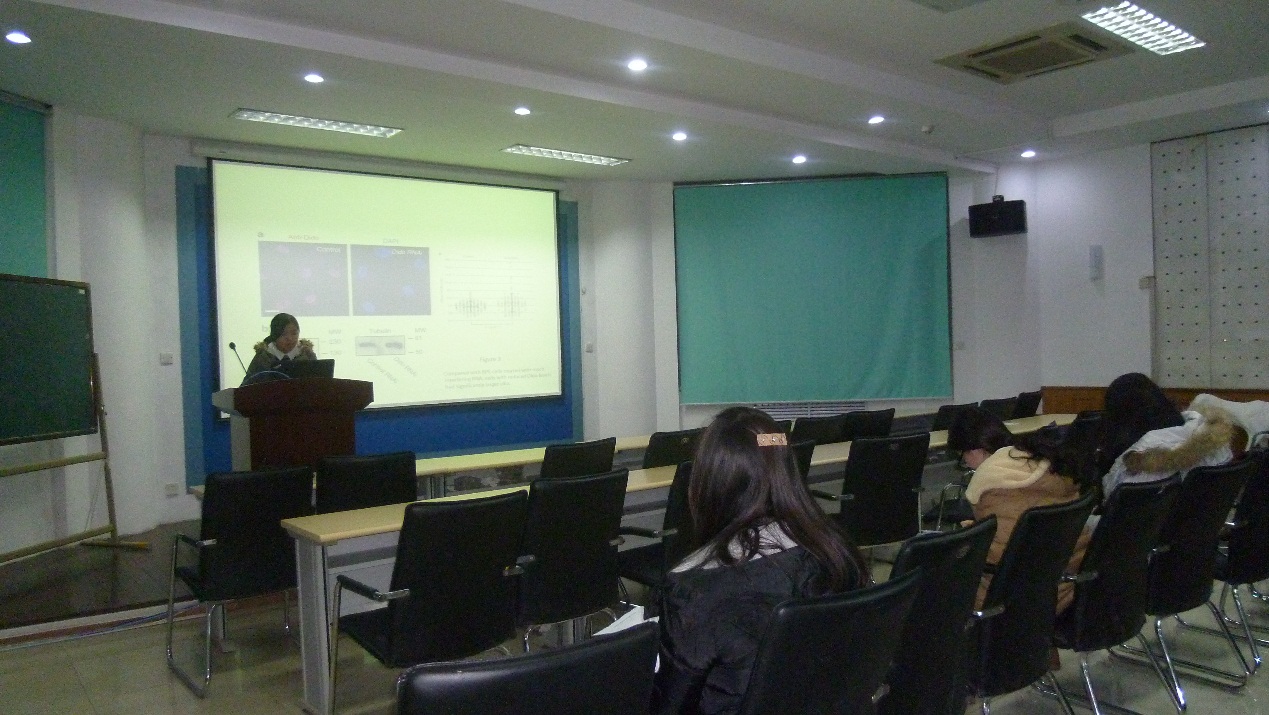 陈苗博士以一篇Nature上的文献为主,为同学们介绍了Dido-3依赖HDAC6靶向控制纤毛尺寸的研究前沿。首先,她介绍了研究背景,包括Dido-3依赖HDAC6的发现以及动物纤毛的发育等。接着,陈博士为大家介绍了实验的大体过程,即通过做定量实验,测定纤毛尺寸来进行研究,并通过DNA干扰试验,确认Dido3依赖HDAC6对纤毛尺寸大小的负调控的作用。经过陈博士的讲解,同学们对实验的流程和结果有了一个新的认识,同时了解了基因调控的前沿问题。在进行专业知识交流的同时,陈博士还与同学们分享了其在科研过程中的收获以及遇到的棘手问题。最后,陈博士与台下同学积极交流互动,同学们踊跃提出疑问,兴趣十分浓厚,会场气氛热烈。