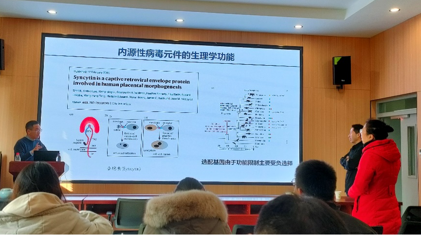 活动伊始,韩管助讲述了自己的学习经历,依据自己的经验,他扣紧“追求”二字例举一位校友五年内发表六篇专业论文的事例。接着,韩管助详细介绍了其实验室的研究方向,包括“病毒进化与多样性”,“病原与宿主之间的竞赛”等,并简单介绍了实验室的研究成果。最后,韩管助向大家介绍了大学生参加“挑战杯”系列赛事的重要意义,结合自己的竞赛经历,给同学们提出中肯建议,鼓励同学们勇敢追求科研梦想。